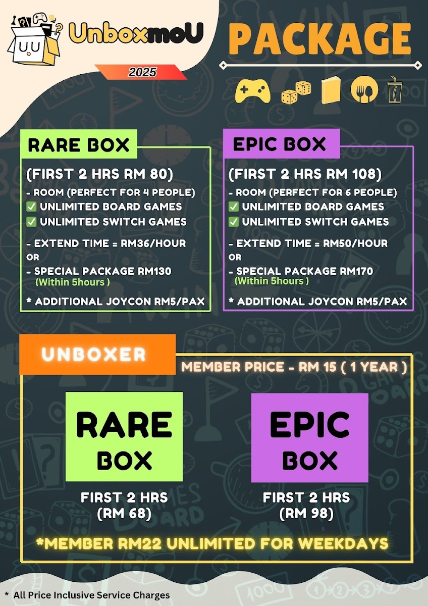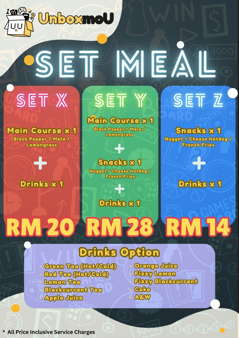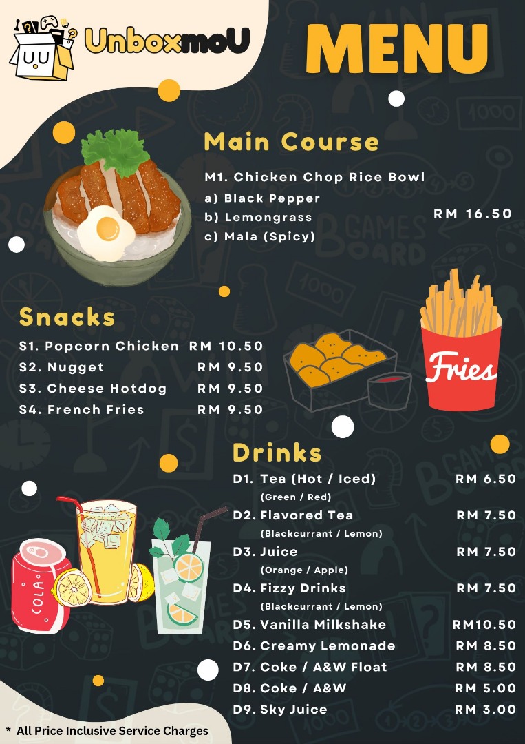 UnboxmoU | Boardgame Cafe Menu